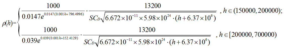 這種模式是否具有實用意義主要取決于離子在工作環境中是否充足, 即是說, 我們首先必須先測出高層大氣的近似的密度. 又因為它太小, 無法直接測量, 我就想出一種間接的方法: 通過測量不受控制的近地軌道衛星的軌道高度的自然衰減. 由于密度可由作用于衛星上的大氣阻力大小求出, 這個阻力間接地體現在衛星高度衰減上, 因此通過計算我們得出密度ρ (kg/m3 ):