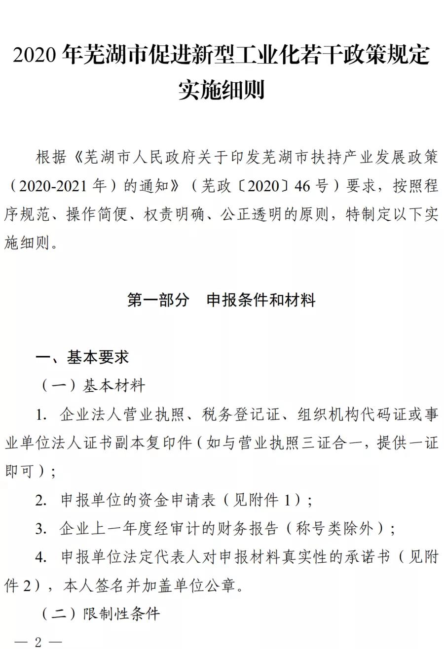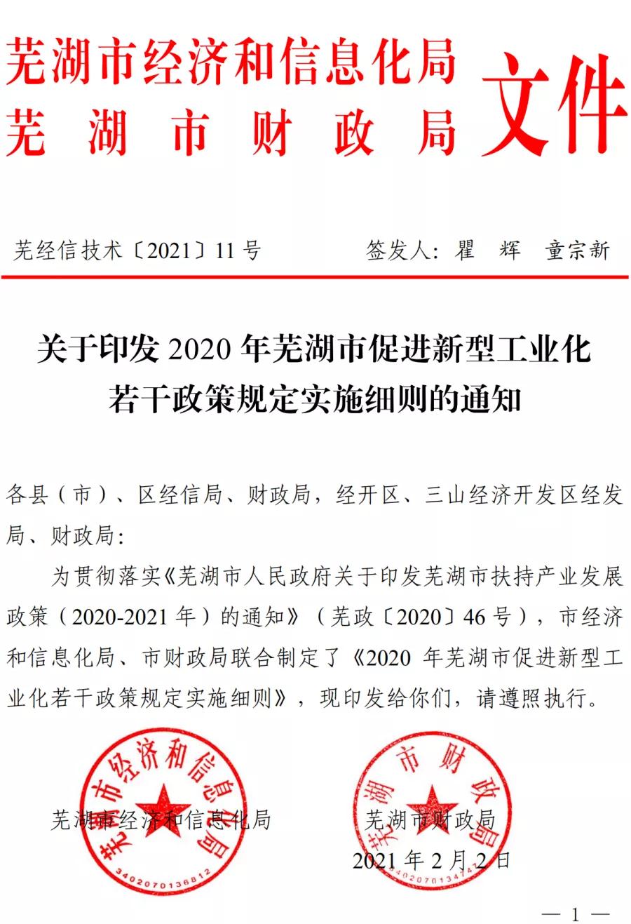 蕪湖市2020年促進(jìn)新型工業(yè)化若干政策規(guī)定實施細(xì)則印發(fā)